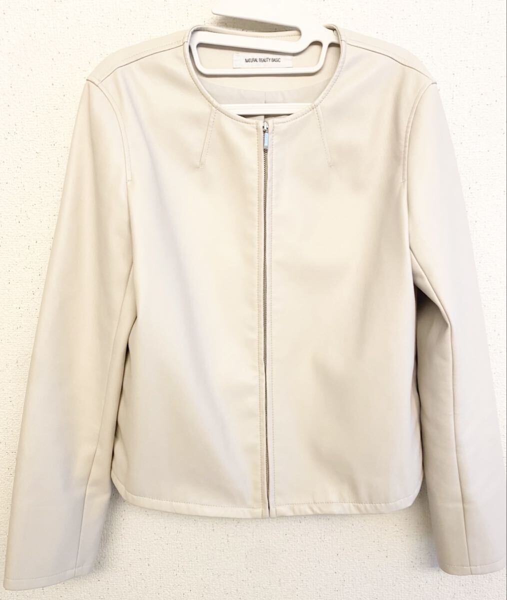 > 美品 フェイクレザーブルゾン NATURAL BEAUTYBASIC サイズM ナチュラルビューティベーシックジャケットアウター ブルゾン ベージュ