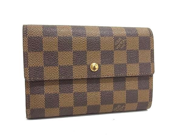 - 1円 LOUIS VUITTON ルイヴィトン N61202 ダミエ ポルトトレゾール エテュイ パピエ 三つ折り 財布 ウォレット ブラウン系 FT3222
