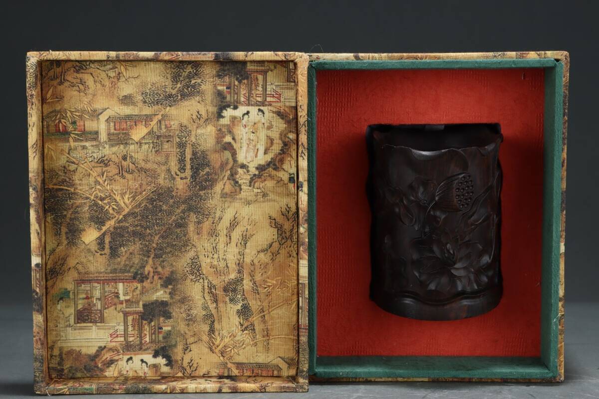 - 旧蔵 沈香木彫 蓮子蓮心 筆筒 擺件 古擺件 古置物 中国古玩 骨董品 時代物 稀少唐物