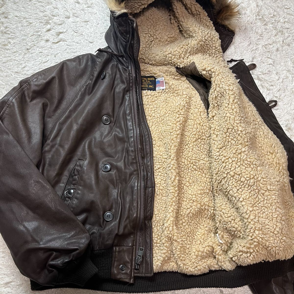 > ●極美品/50インチ/特大サイズ SCHOTT ショット N5-A フライトジャケット レザージャケット パーカー フード ボア 本革 レザー ブラウン