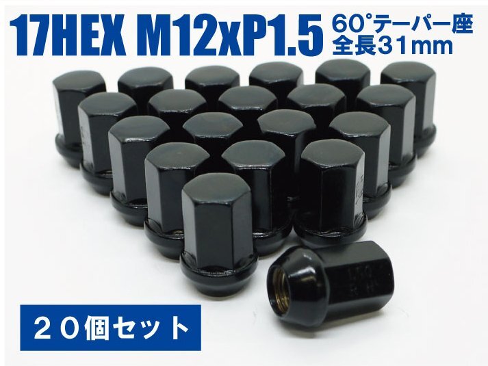 - ラグナット 袋ナット DK 20個入 17HEX M12xP1.5 60テーパー座 【ブラック】トヨタ