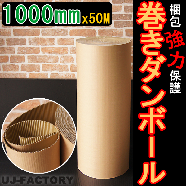 > 【激安!即納】超丈夫/巻きダンボール 1000mm×50m 巻きダン/片段/巻き段【1本】表側:クラフト50g×裏側:クラフトNC110g