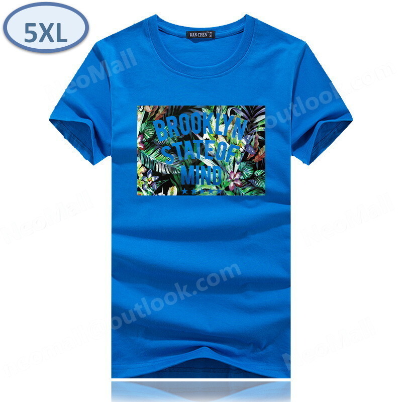 - 夏にピッタリ ☆ 丸首 半袖 Tシャツ【074】 ブルー 5XLサイズ トップス シャツ シンプル イラスト プリント 春夏