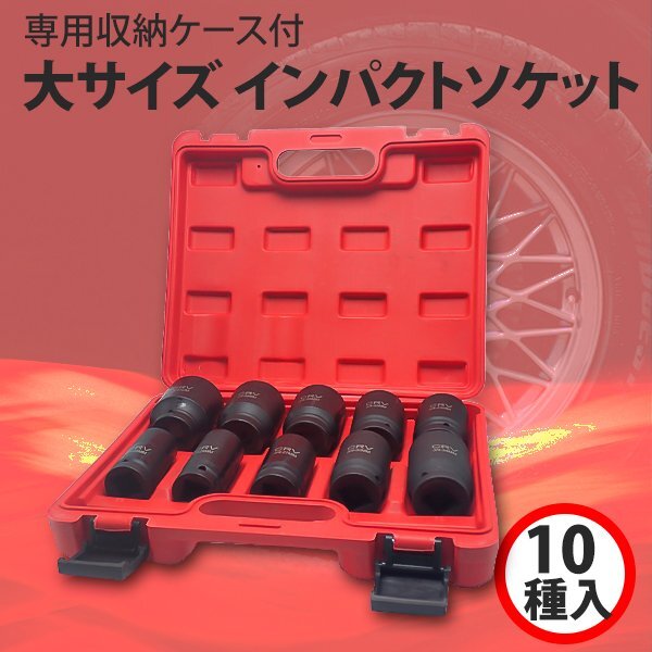 > 六角 インパクトソケット 10本セット ディープソケット ハブロックナット 差込角 3/4インチ 収納ケース付き 22~41mm 工具 DIY