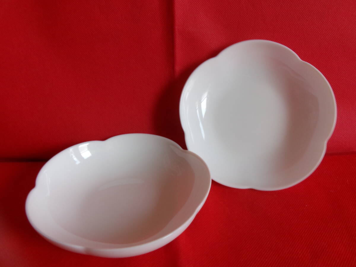 - 未使用品 白いお皿シリーズ 花型 深皿 プレート 2枚セット