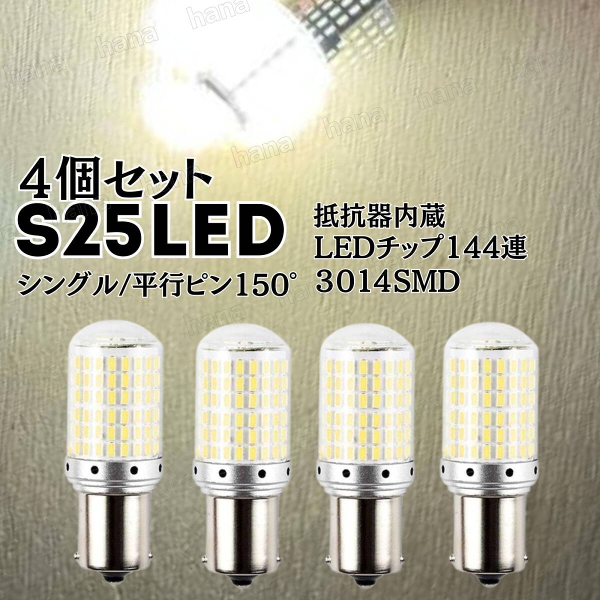 > S25 LED ウィンカー ウインカー バルブ 平行ピン 150度 ホワイト 4個セット シングル キャンセラー ハイフラ防止抵抗 内蔵 白 ウェッジ