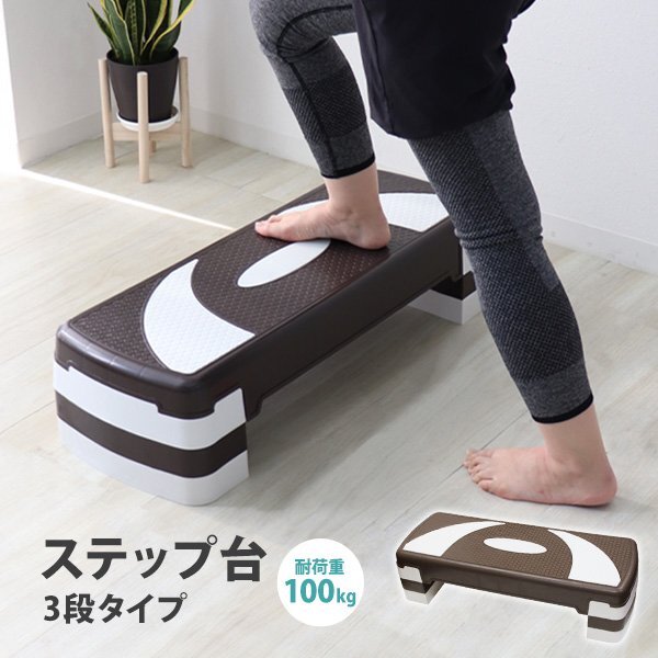 > 【ブラウン】ステップ台 3段 踏み台昇降 ステッパー 3段階調節 エクササイズ フィットネス 踏み台 ダイエット トレーニング 有酸素運動