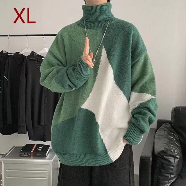 - メンズニット メンズ セーター カットソー トップス オシャレ カジュアル 通学 ハイネック 秋冬コーデ グリーン XL