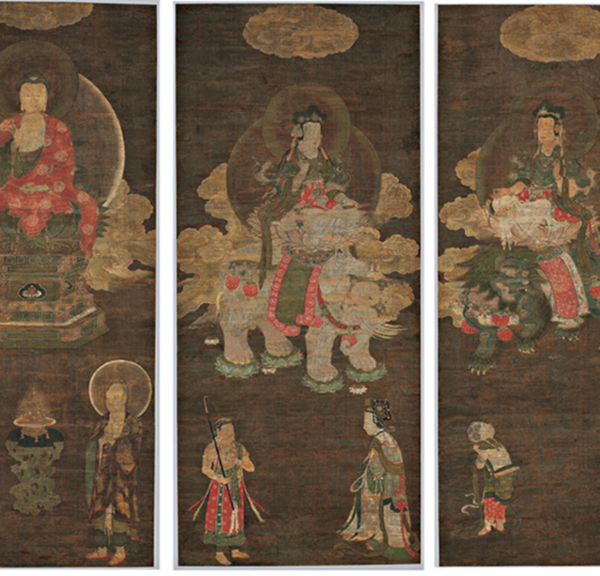 - 釈迦三尊像 47 x 321 cm(3枚)装飾 コレクション 奉納 元 掛け物 zhzx239-1