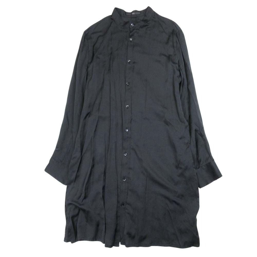 > 美品 bajra バジュラ バックベルト ロングシャツ ブラウス カットソー 羽織 長袖 スタンドカラー 薄手 2 黒 ブラック
