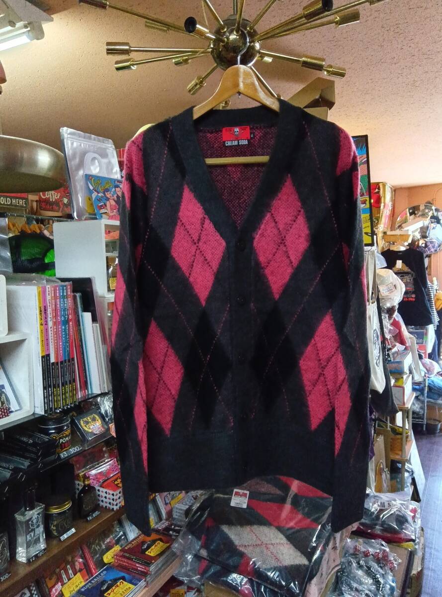 > MサイズGRAY色クリームソーダモヘア混シャギーニットカーディガングレー色検索CREAMSODAロカビリーピンクドラゴンダイヤ柄アーガイル