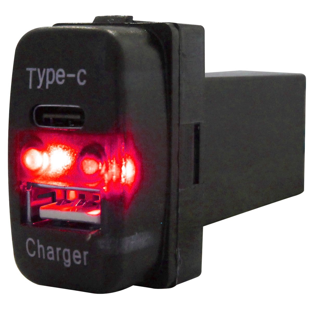 - 【送料220円】ミツビシA グランディス NA4W LED/レッド USB Type-C タイプC ポート 充電 QC3.0 12V パネル スイッチホールカバー