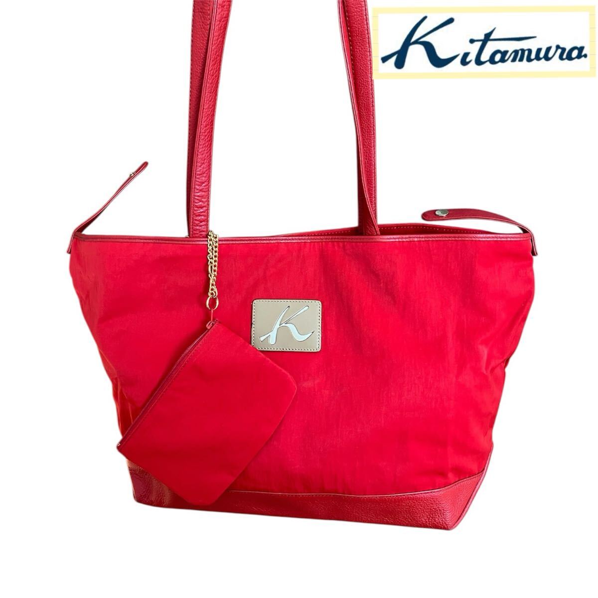 > TA■ Kitamura キタムラ トートバッグ ポーチ付き 赤 レッド 肩掛け バッグ 大容量 トラベルバッグ 鞄 カバン レディース ロゴ A4 収納可能