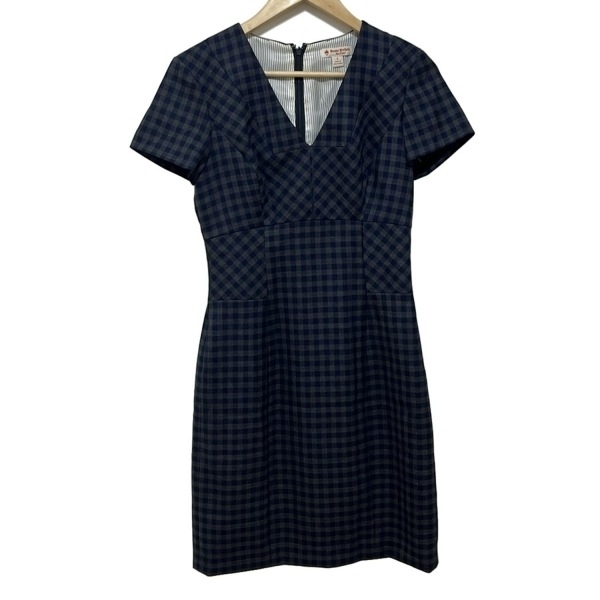 > ブルックスブラザーズ BrooksBrothers サイズ2 S - ネイビー×グレー レディース Vネック/半袖/ひざ丈/チェック柄 ワンピース
