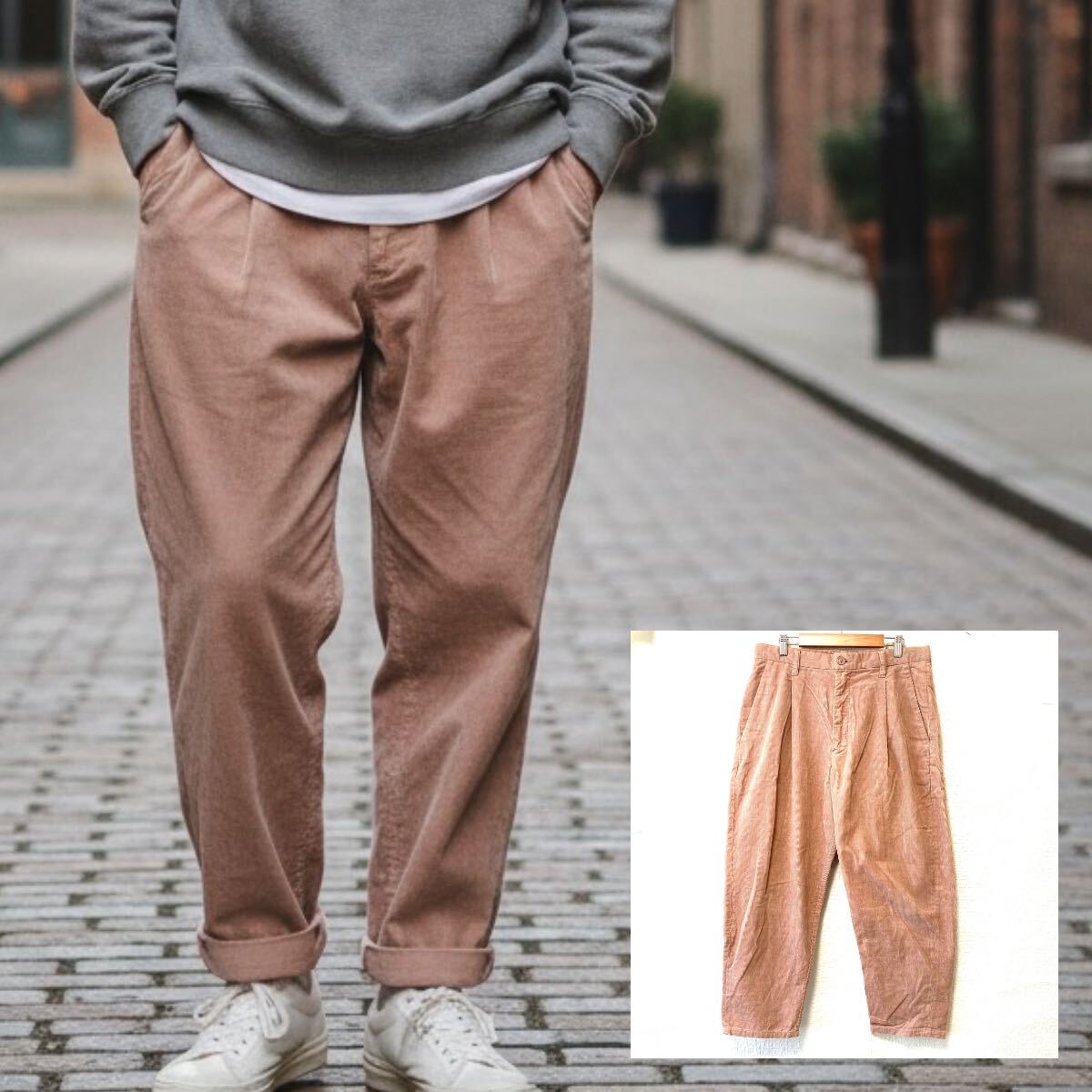 - 暖かみのあるコーデュロイ素材!【SENSE OF PLACE】センスオブプレイス タック パンツ チノパン サーモンピンク メンズ L/Y38132UU