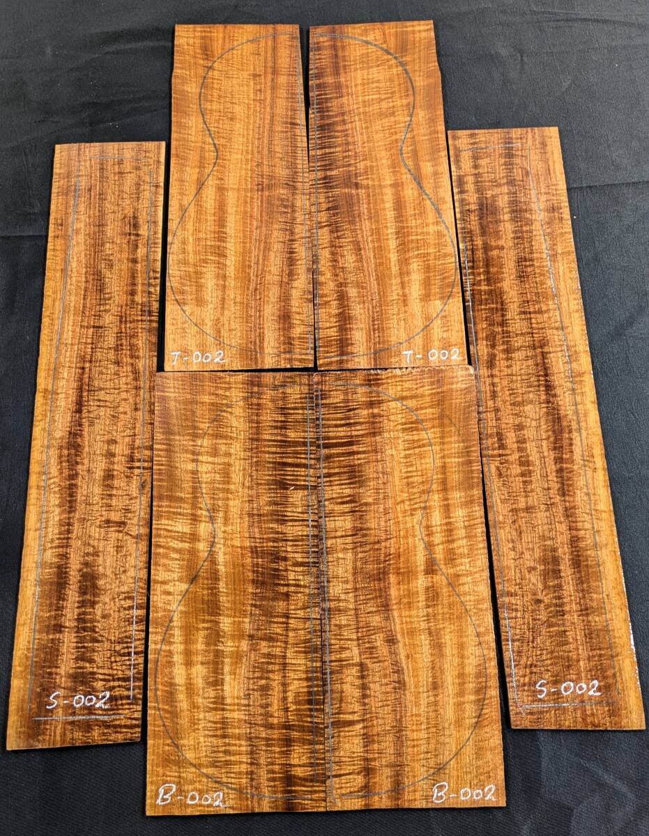 - ◆新着◆AC-TR-TBS-002・タスマニア・ブラックウッド(アカシア)・希少4A+・超特価ウクレレ材・テナー・表裏サイド6枚セット・送無