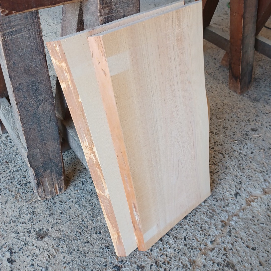 > A-2408 国産ひのき 耳付板 2枚セット 看板 棚板 テーブル 一枚板 無垢材 桧 檜 DIY
