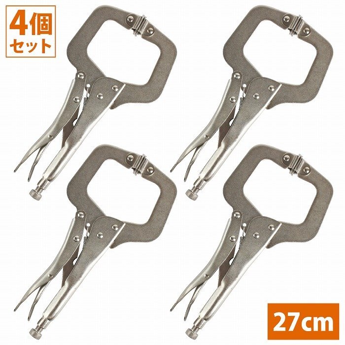 > 4個 27cm C型 バイスプライヤー 板金 溶接 木工 万力 レバー クランプ 工具 ロッキング ロック プライヤー 平口 クリップ 4本