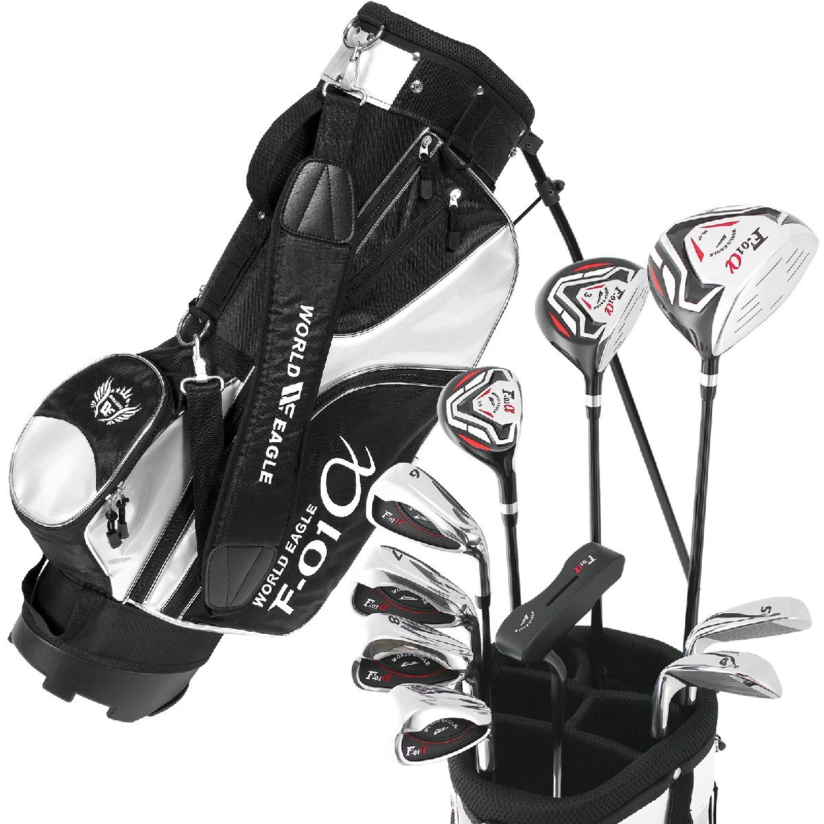 - F-01α クロスモデル メンズゴルフセット スタンドキャディバッグ付 右利き用 バッグ:ブラックシルバー/フレックスR[63600]