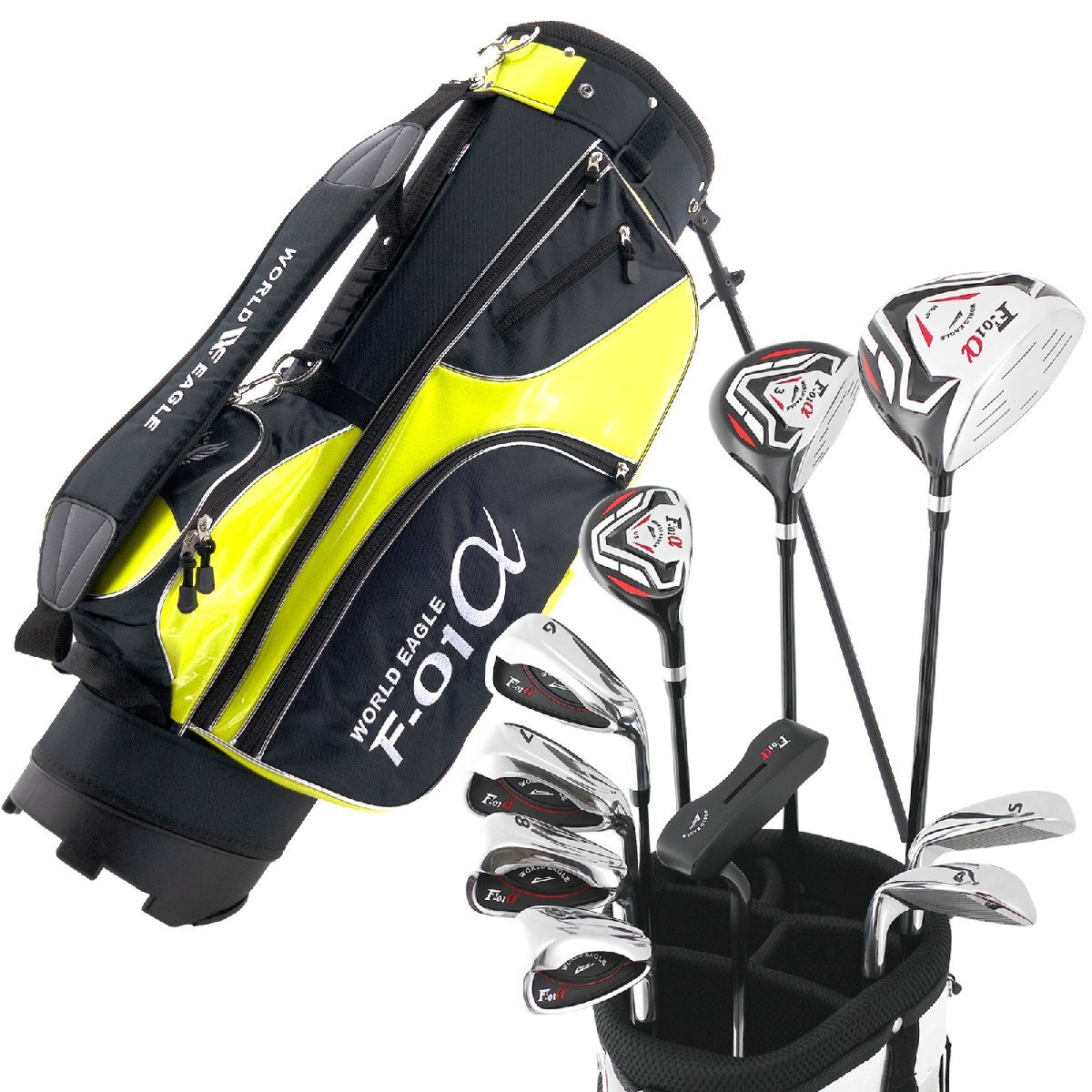 - F-01α クロスモデル メンズゴルフセット スタンドキャディバッグ付 右利き用 バッグ:ブラックイエロー/フレックスR[63608]