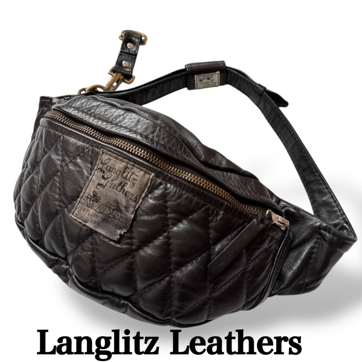 - ラングリッツレザーズ Langlitz Leathers パッデッド インサイド ポケット ウエスト バッグ レザー ツールバッグ 革 バイク ブラック 牛革