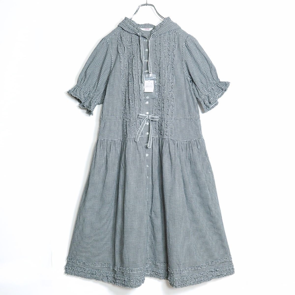 > 【極美品】ピンクハウス★ゆったりフォルム♪フード付きワンピース 黒×白系 前開き ギンガムチェック♪残布有 z16375