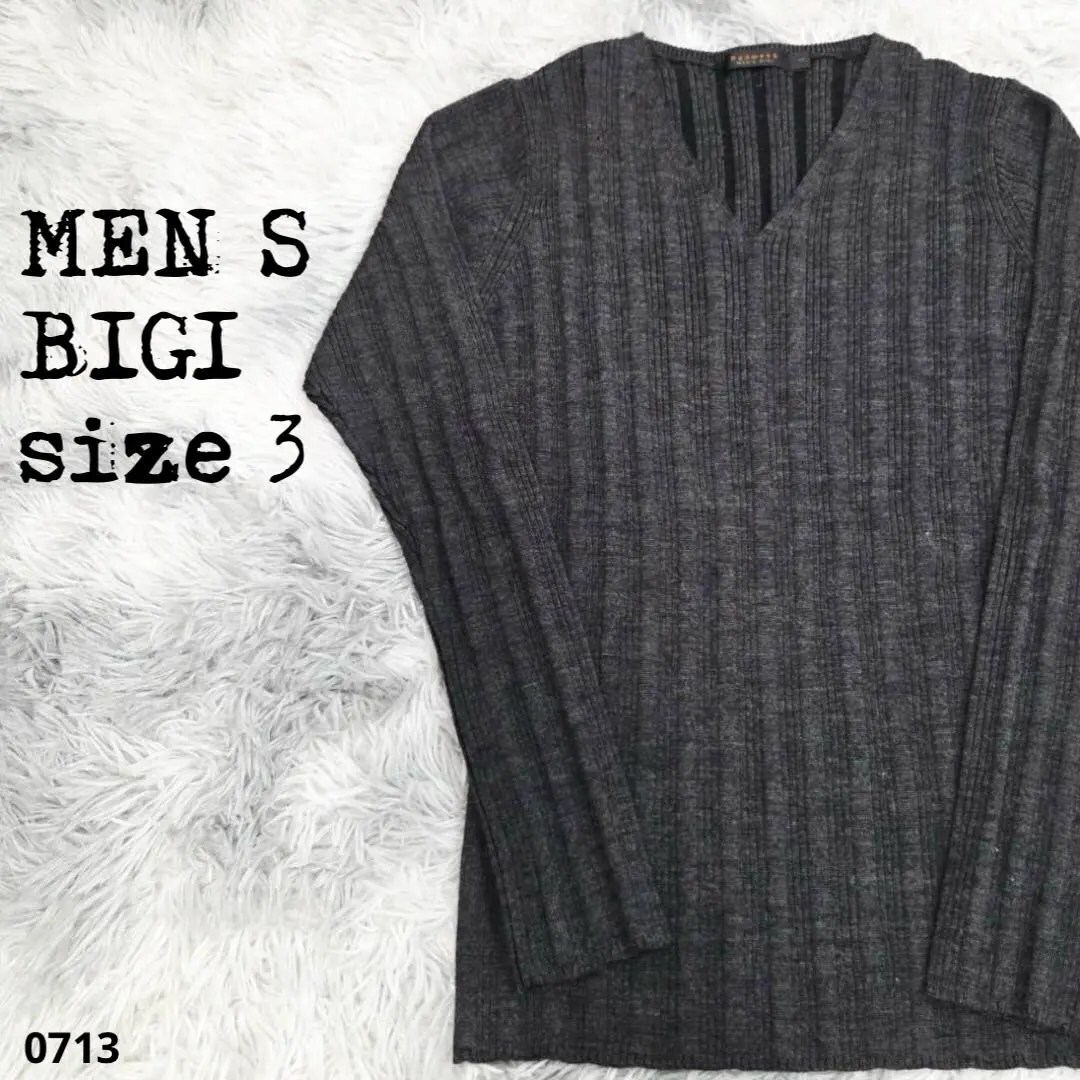 - MEN’S BIGI メンズビギ ニット セーター 長袖 グレー ウール 713