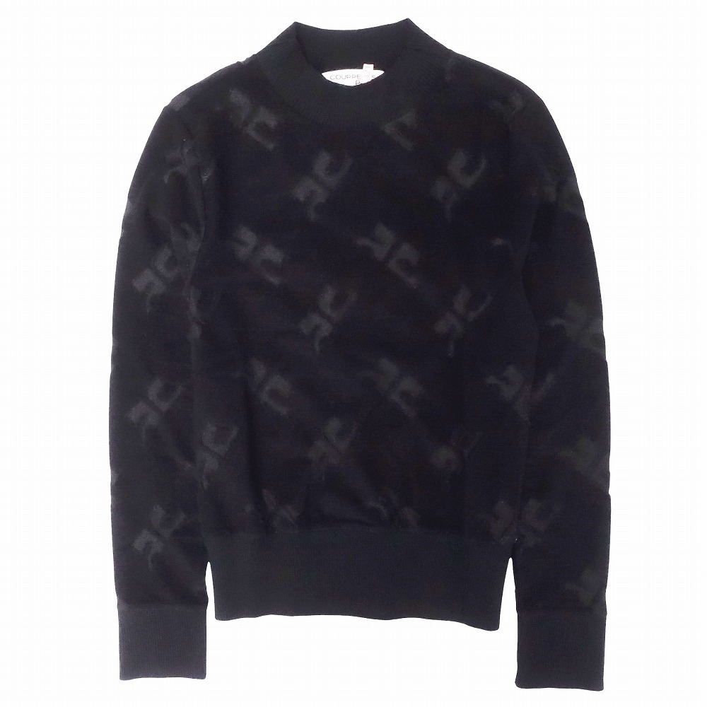 > courreges paris クレージュ ニット セーター 長袖 ジャガード ロゴ ハイネック パイル トップス M ブラック 黒 レディース 【中古】