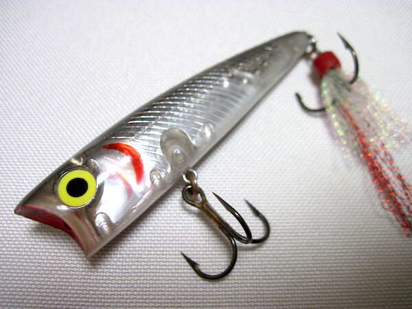 - シルバー《REBEL》チャグR【CHUG-R 8cm】_スーパーポップRと同サイズ『オールドレーベル』反射板入り クリア『テールフック1ヶ所先折れ』