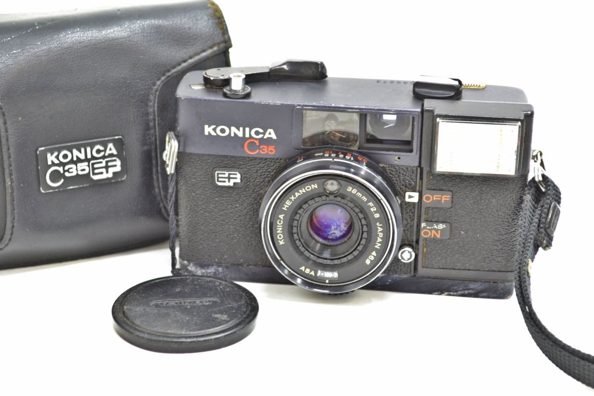 - (969M 1121R2) 1円~KONICA コニカ C35 EF KONICA HEXANON 38㎜ F2.8 コンパクトフィルムカメラ ケース付き カメラ フィルム