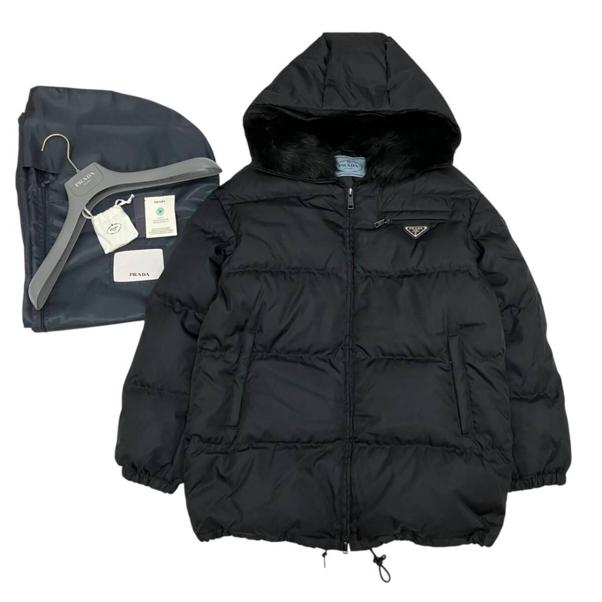 > PRADA プラダ 22AW Re-Nylon ギャバジンパ ファージャケット ブラック 三角ロゴ ダウンジャケット