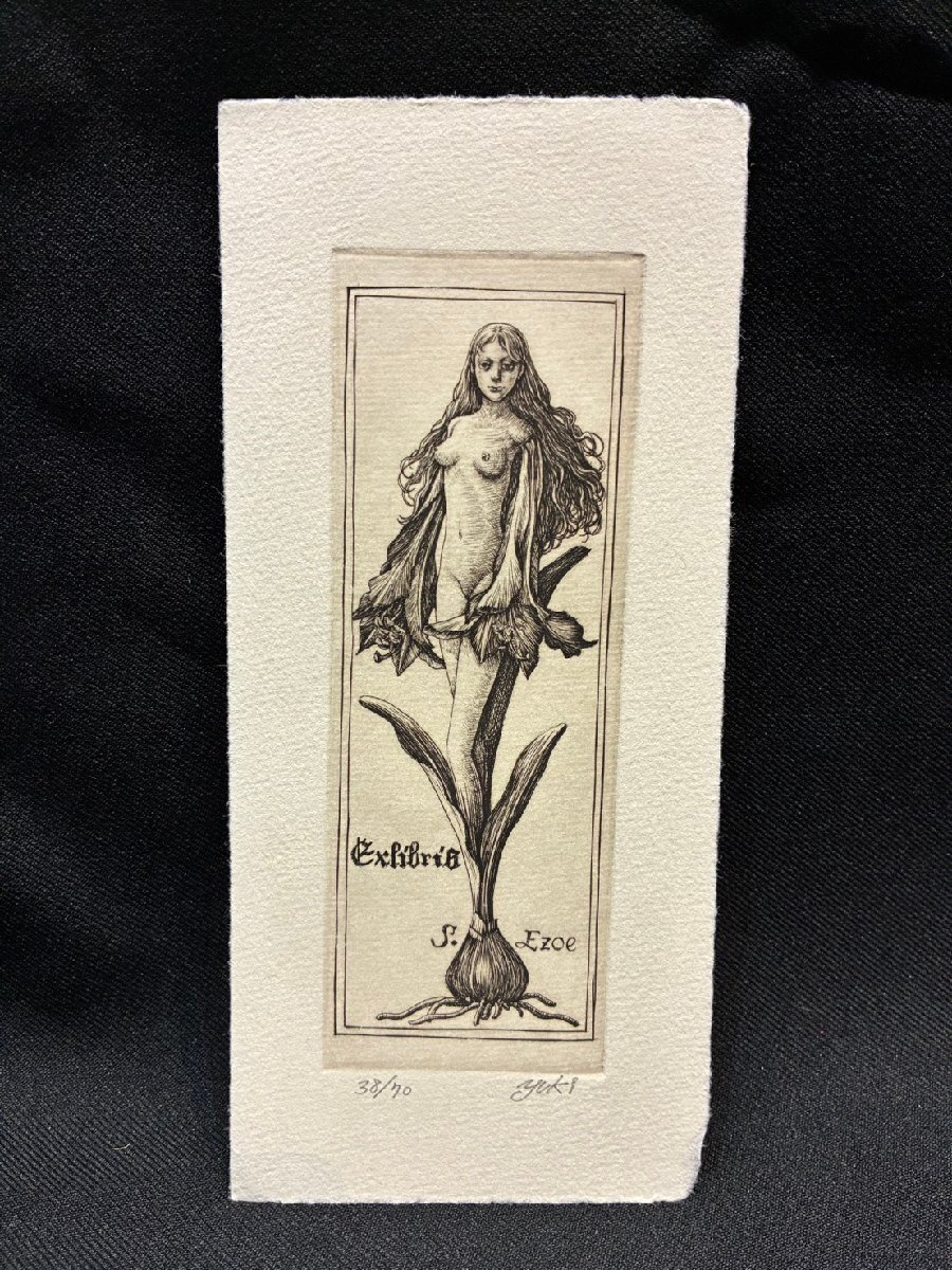 > ★美品 林由紀子 花冠 S.Ezoe エクスリブリス 限定70部 38番目の作品 署名入 蔵書票 銅版画 エッチング サイズ(約)幅9×H20㎝