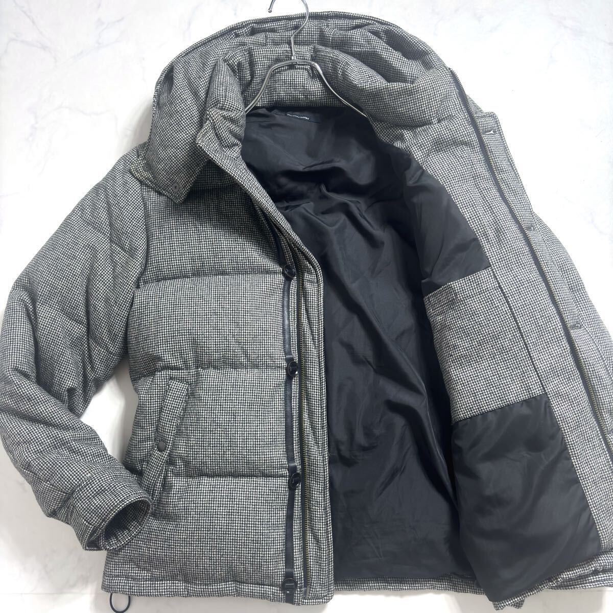 - 美品/Lサイズ URBAN RESEARCH ダウンジャケット ブルゾン●千鳥格子 肉厚 フード着脱 牛革 Wジップ ドローコード メンズ アーバンリサーチ