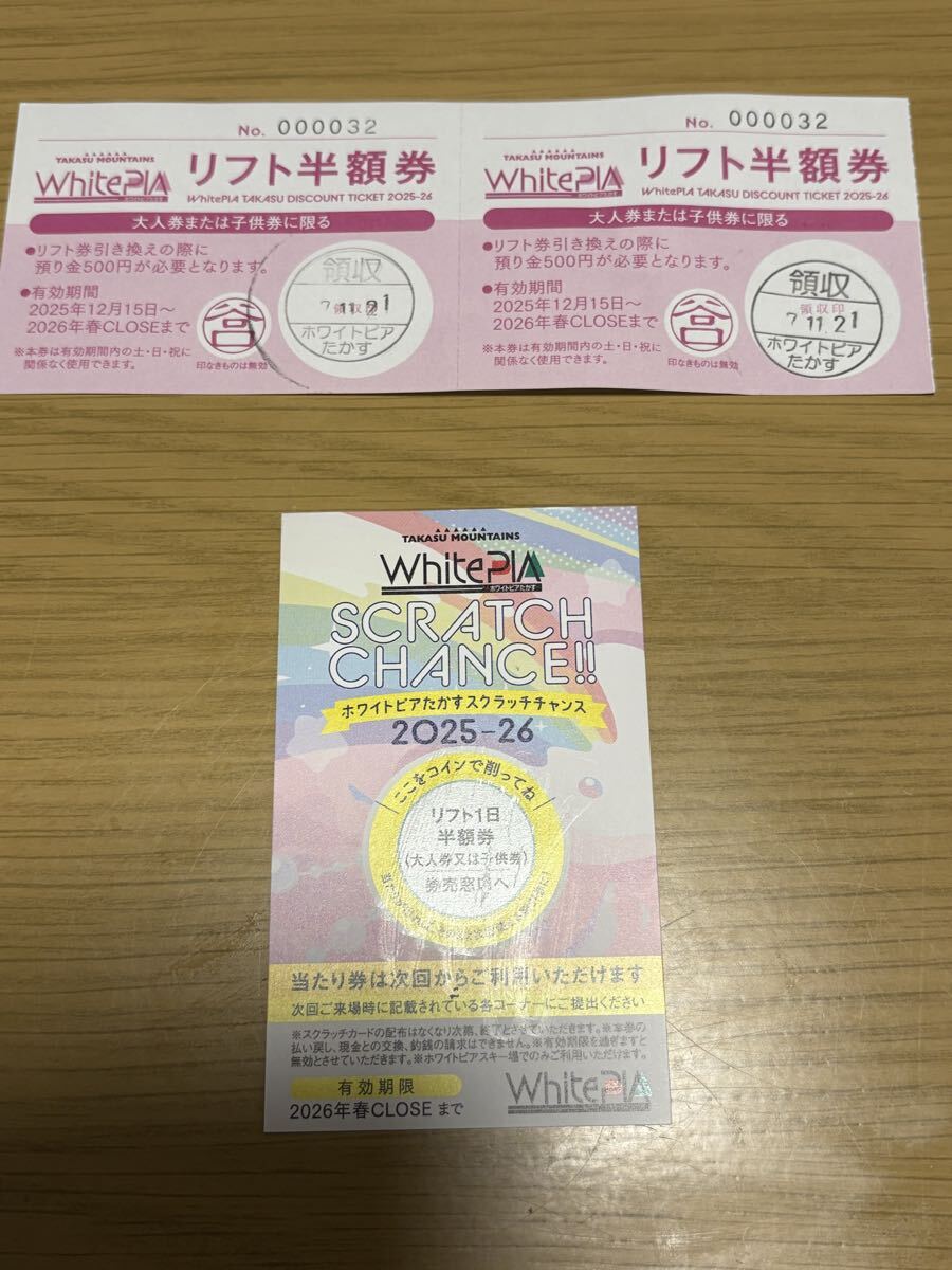 - ♪Whiteピア高鷲 リフト半額券(3枚)