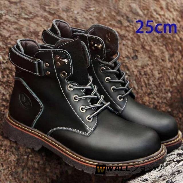 > ワークブーツ メンズ ショートブーツ ミリタリーブーツ 革靴 ワークシューズ アウトドア マウンテンブーツ ベルト 春夏秋冬 黒 25cm