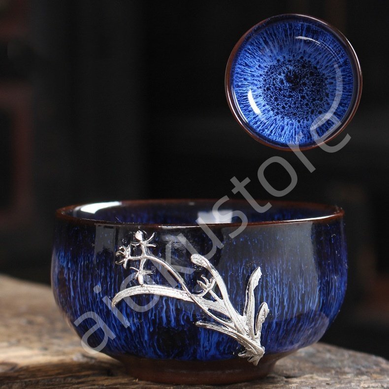 - 新品 職人手作り 抹茶茶碗 曜変天目茶碗 茶道具 梅竹蘭菊 茶道 茶碗 窯変天目茶碗 油滴天目 茶道具 茶器 初心者 酒器 陶芸用品##035