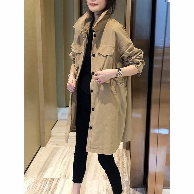 - トレンチコート ライトコート レディース ガールズ アウター スプリングコート ミドル丈 長袖 防風 着痩せ 春秋コーデ シンプル XL