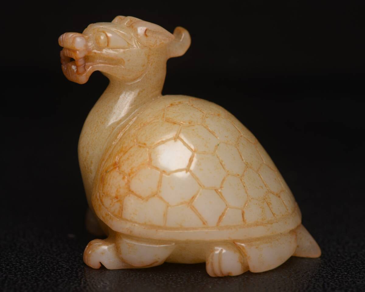 - 旧蔵 和田玉彫 龍龜 根付 中国古玩 骨董品 時代物 稀少唐物