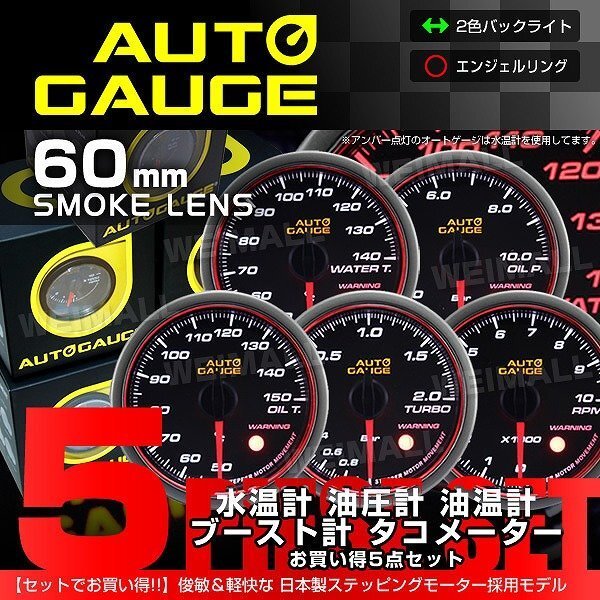 - 【5点セット 水温計/油温計/油圧計/タコメーター/ブースト計】オートゲージ 60mm 458 追加メーター 計器 オープニング ワーニング 60Φ