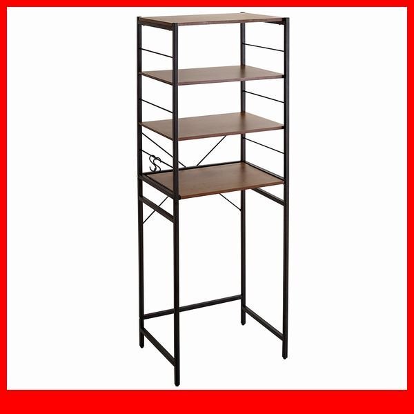 - レンジ台★新品/ヴィンテージゴミ箱上レンジラック/省スペース 幅60cm 可動棚 スライドトレー/木目調 濃茶系/ウォールナット/a3