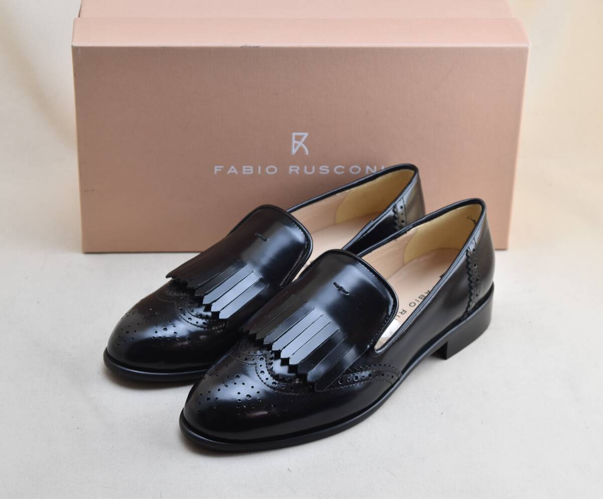 > FabioRusconi ファビオルスコーニ メダリオン キルトローファー ブラックハイシャイン F-3076 35 22.5cm相当 未使用品 イタリア製