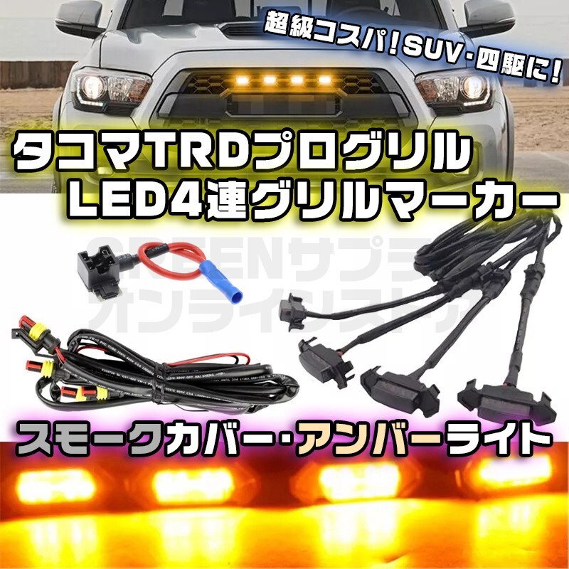 - LED グリル マーカー 4連 トヨタ タコマ TRD スモーク カバー