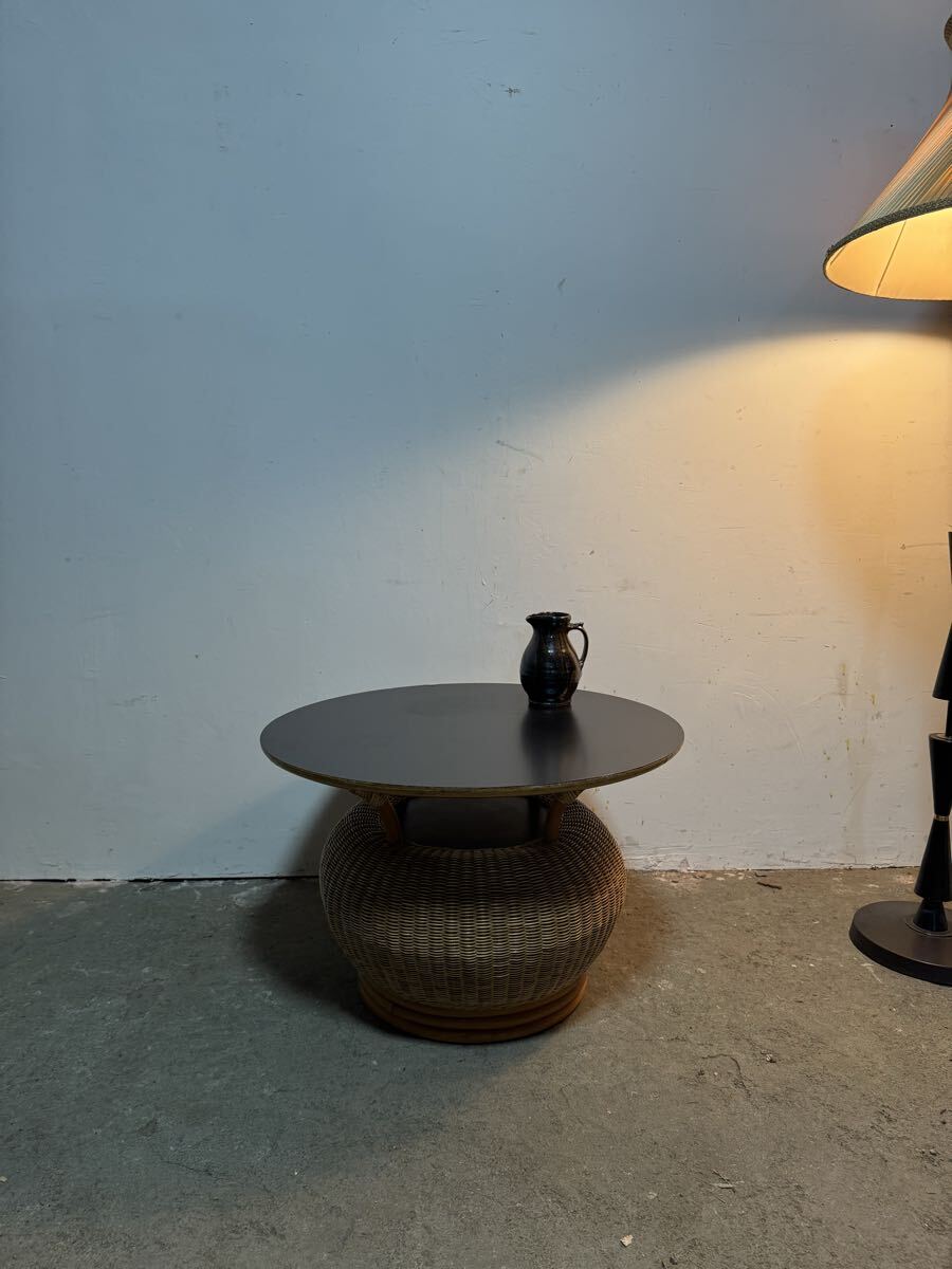 - レトロ ラタン テーブル サイドテーブル ヴィンテージ インテリア 藤家具 検索)ヤマカワラタン 山川ラタン 丸テーブル センターテーブル