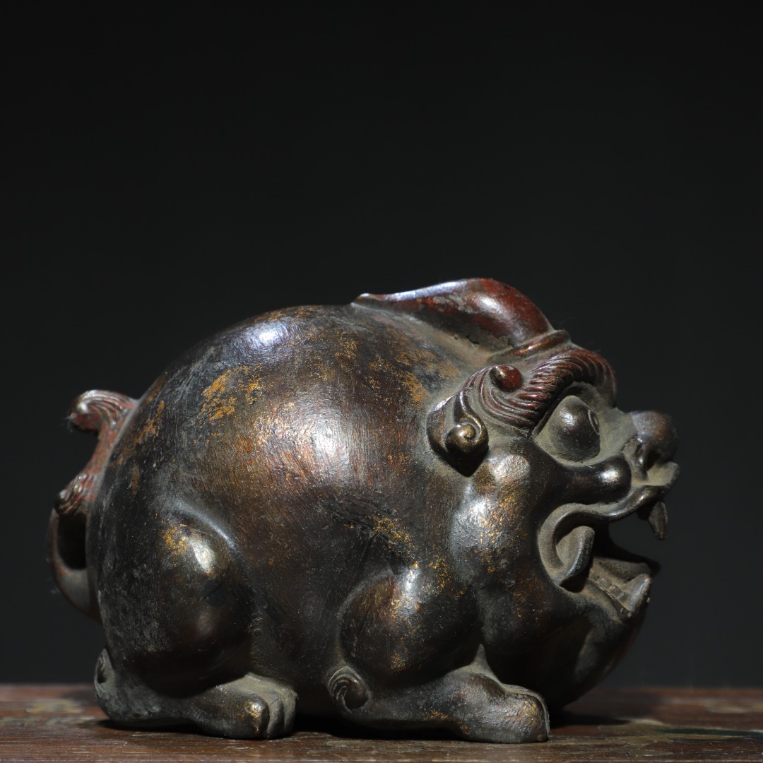 - 旧蔵 古銅彫 拓金 貔貅 擺件 古擺件 古置物 中国古玩 骨董品 時代物 稀少唐物