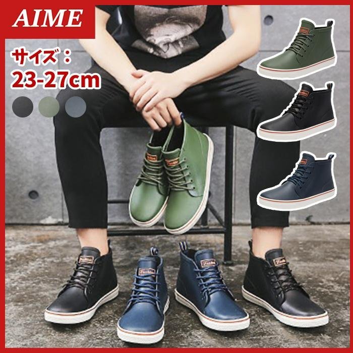 - レインシューズ スニーカー メンズ レインブーツ 長靴 雨用 シューズ カジュアルシューズ レジャーシューズ 男性用 3色 970