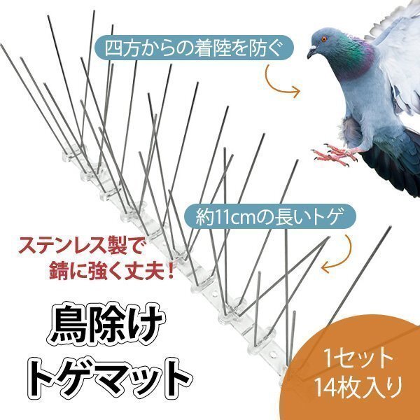 - 鳥よけグッズ とげ マット 14枚 セット 全長3.5m 害鳥対策 剣山 ハト除け ベランダ 鳥よけネット 害鳥 トゲマット 鳥よけシート