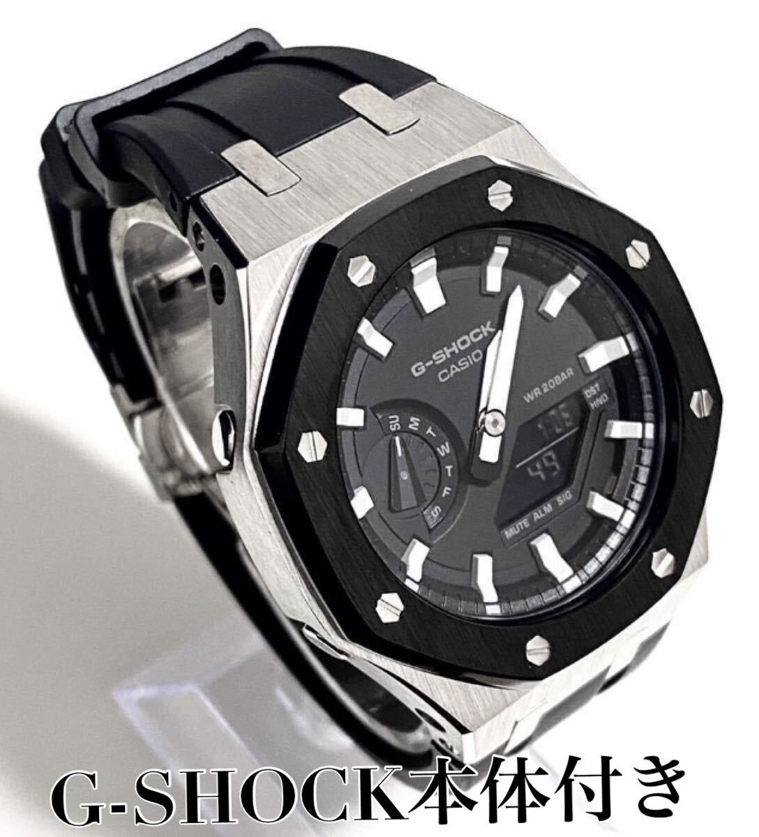 - 【本体付き】G-SHOCK GA-2100ラバーベルトセット メタル カシオーク カスタム Gショック ブラックシルバー×ブラックラバー