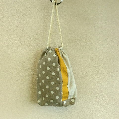 - 【入学、入園!】500円グレードットパッチワーク巾着袋 【手作り小物】