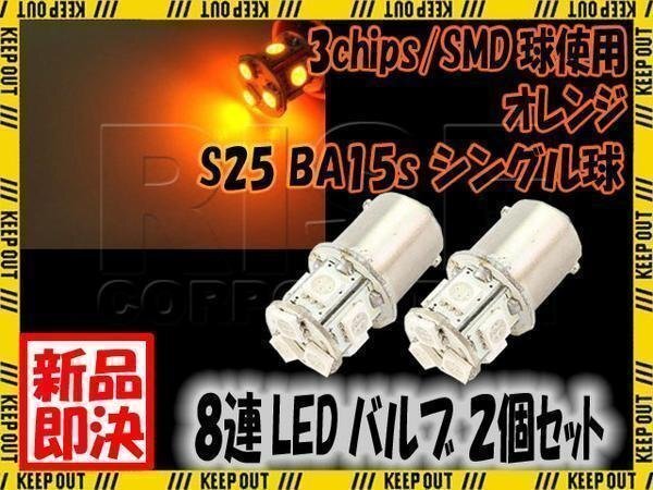 S25 G18 8連 SMD LED バルブ オレンジ発光 シングル 2個セット拍卖