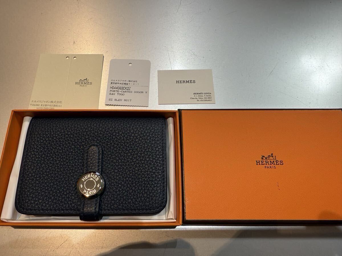 - 極美品 エルメス ドゴン トリヨンクレマンス カードケース 名刺入れ コインケース 濃紺
